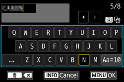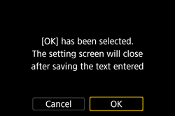 | Finishing the text entry | Press the < MENU > button to confirm what you have entered and exit. If a confirmation dialog is displayed, select [OK] to exit. |