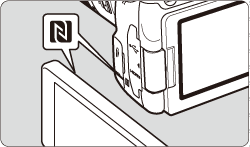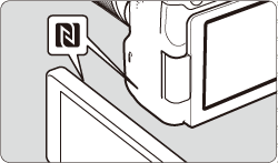 - A Wi-Fi connection cannot be established with the NFC function while shooting with this camera, when there is no card, when the LCD monitor is closed with the screen facing inward, or while the camera is connected to another device with an interface cable.