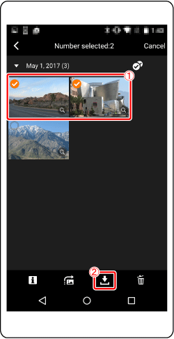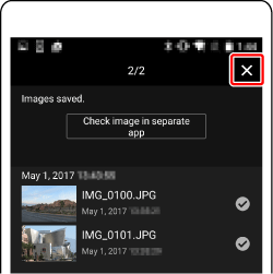 ). The selected images will be saved to the smartphone.