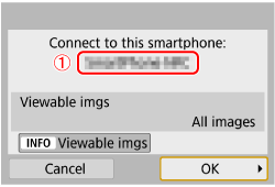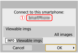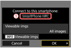 - On the smartphone’s Camera Connect screen, tap on [