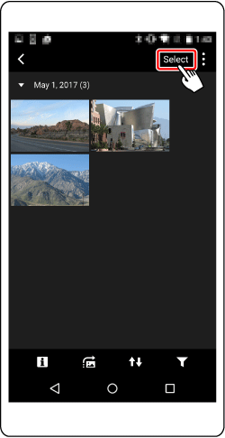 When a list of images in the camera appears on the smartphone, tap [Select] on the upper right of the screen.