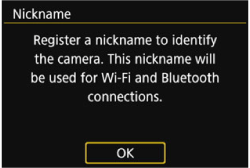 When making Wi-Fi settings for the first time, a screen will appear for you to register a nickname for the camera (for identification).