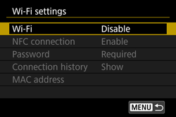 > buttonYou can establish a Wi-Fi connection by displaying the Wi-Fi function menu with the <