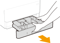 - Make sure to hold the paper drawer with both hands, and pull it out gently. Otherwise, you may damage the paper drawer by dropping it, if it slides out too easily.