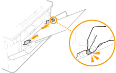 - Press the lock release lever to slide the paper guides outward.
