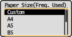 You can ensure that only frequently used paper sizes are shown in the <Frequently Used Sizes> screen for selecting the paper size setting.