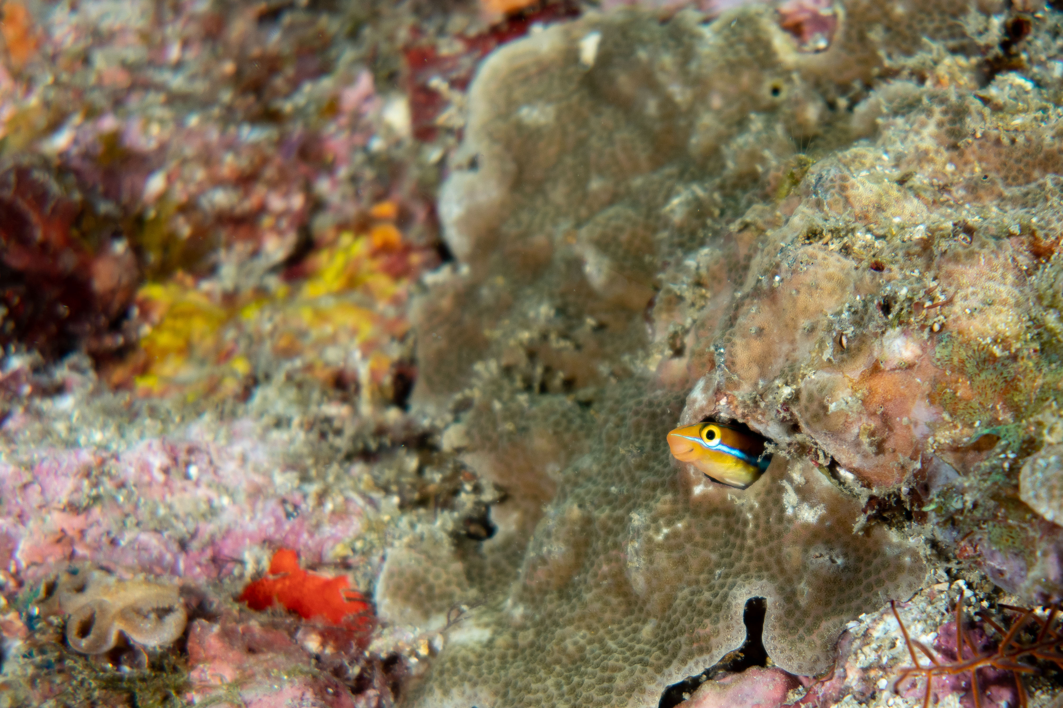 水下攝影的困難在於水下的浮力、水流的掌握及水下險惡的環境,因此水下攝影名言『活著回來。』便因此產生,而我也從大二經過了一年半的嘗試在水下找到跟自己相處的方式。一開始我使用他牌的卡片機進行拍攝,但發現畫質表現及操作性無法達到預期,我便加入了 Canon 的行列,也發現 Canon 的種種皆為我所愛。