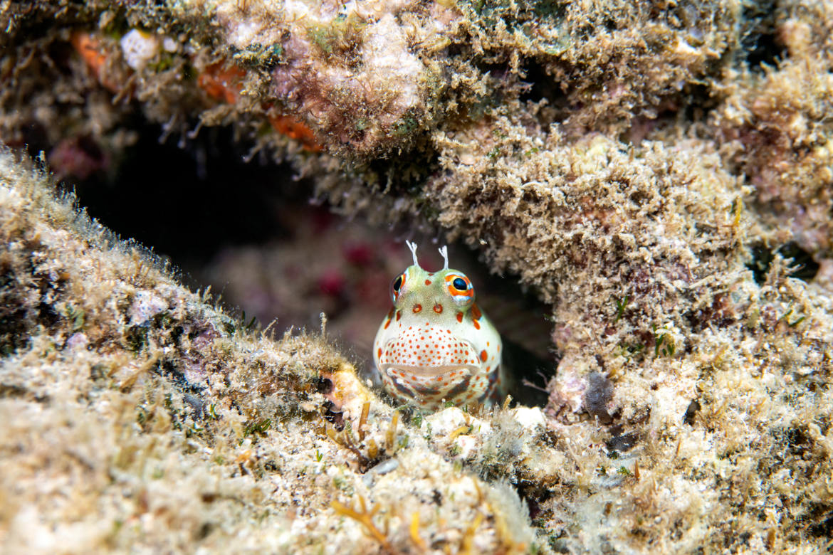 䲁魚(Blenny)俗稱布蘭妮,喜歡躲在珊瑚石縫中。