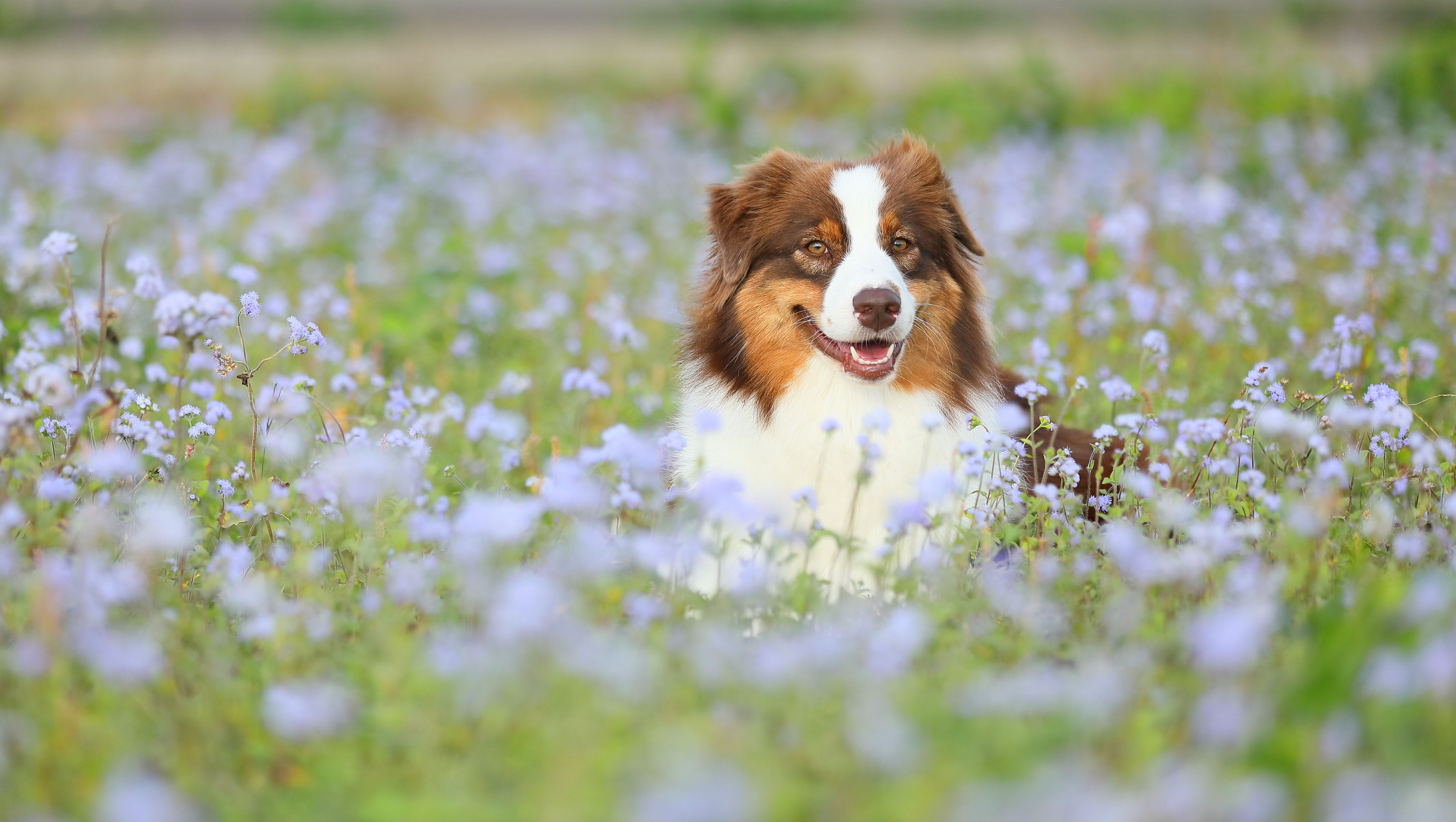 桃園花海節紫花藿香薊澳洲牧羊犬