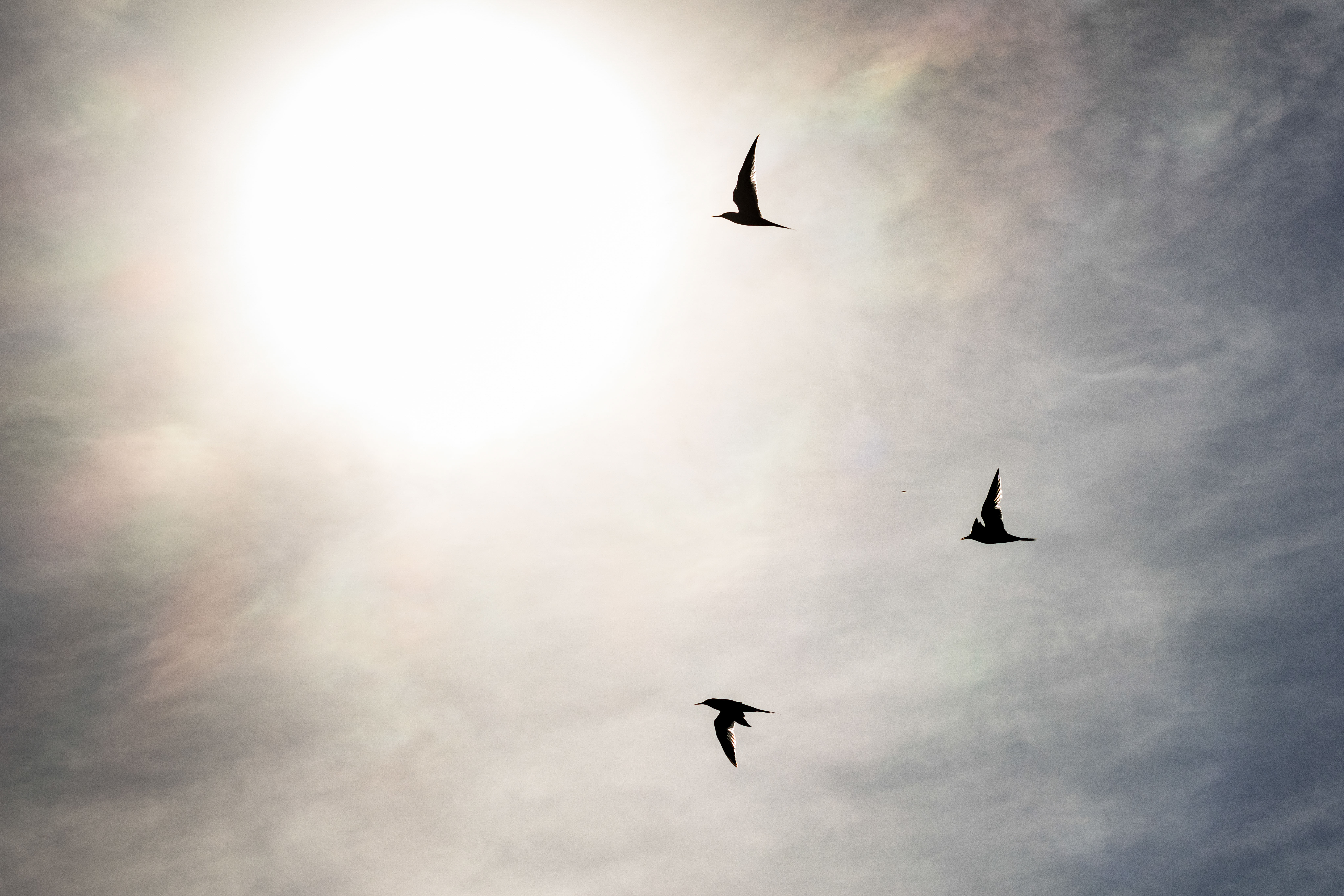 曙光乍現,燕鷗朝我接近。過於耀眼的光芒使我來不及反應,卻反而記錄下拂曉的朦朧。