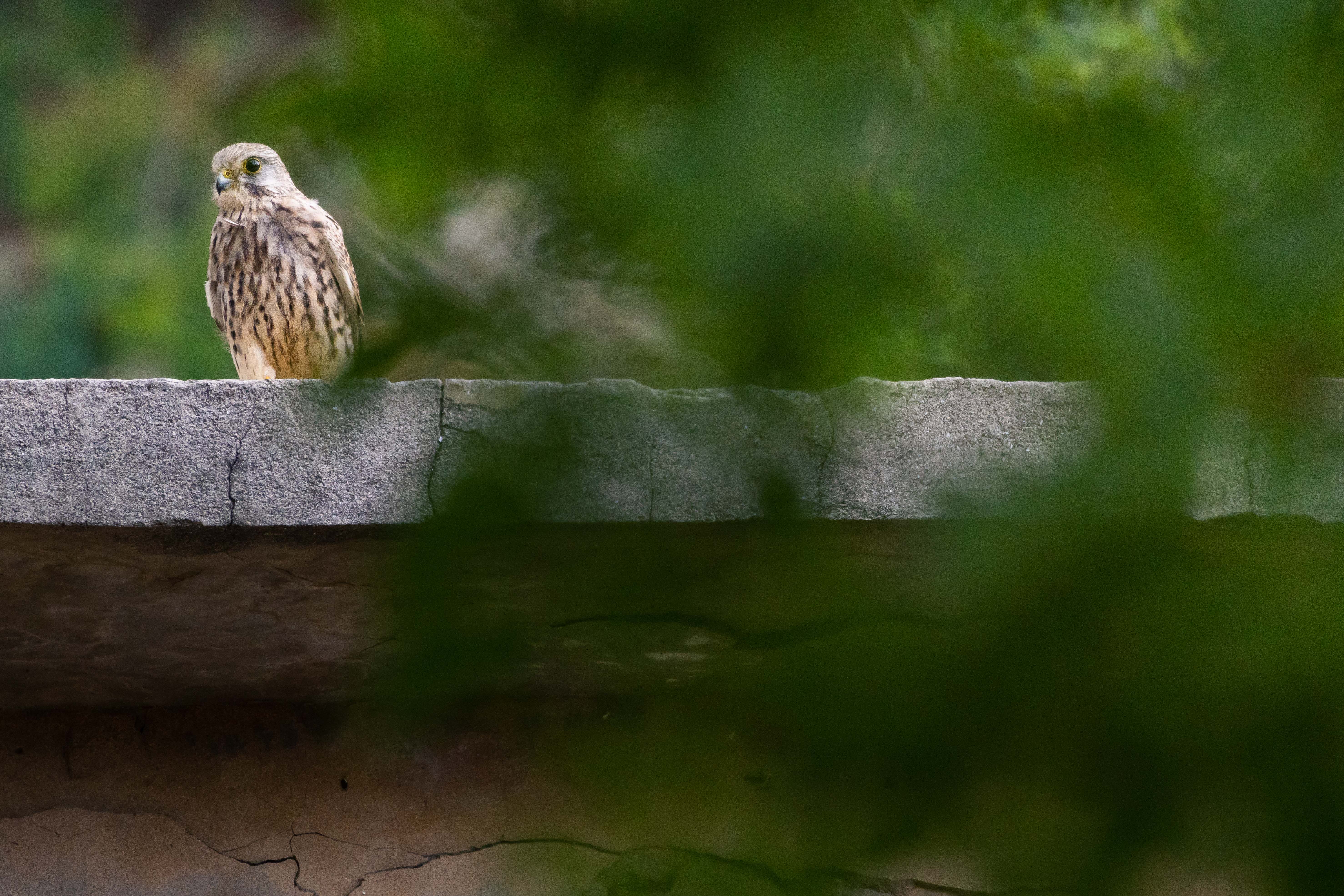 僅有提早踏上旅途的少數羽翼,在陰雲之下與我們在這片土地相遇。難以飛翔的強風之中,紅隼於是降落在低矮的房頂歇息,一行人躡手躡腳的躲在大樹後緩緩接近。威風凜凜的猛禽,此時張著楚楚可憐的大眼,彷彿訴說著遷徙旅途上遇到的種種挫折與困難,此時的我們也感同身受。