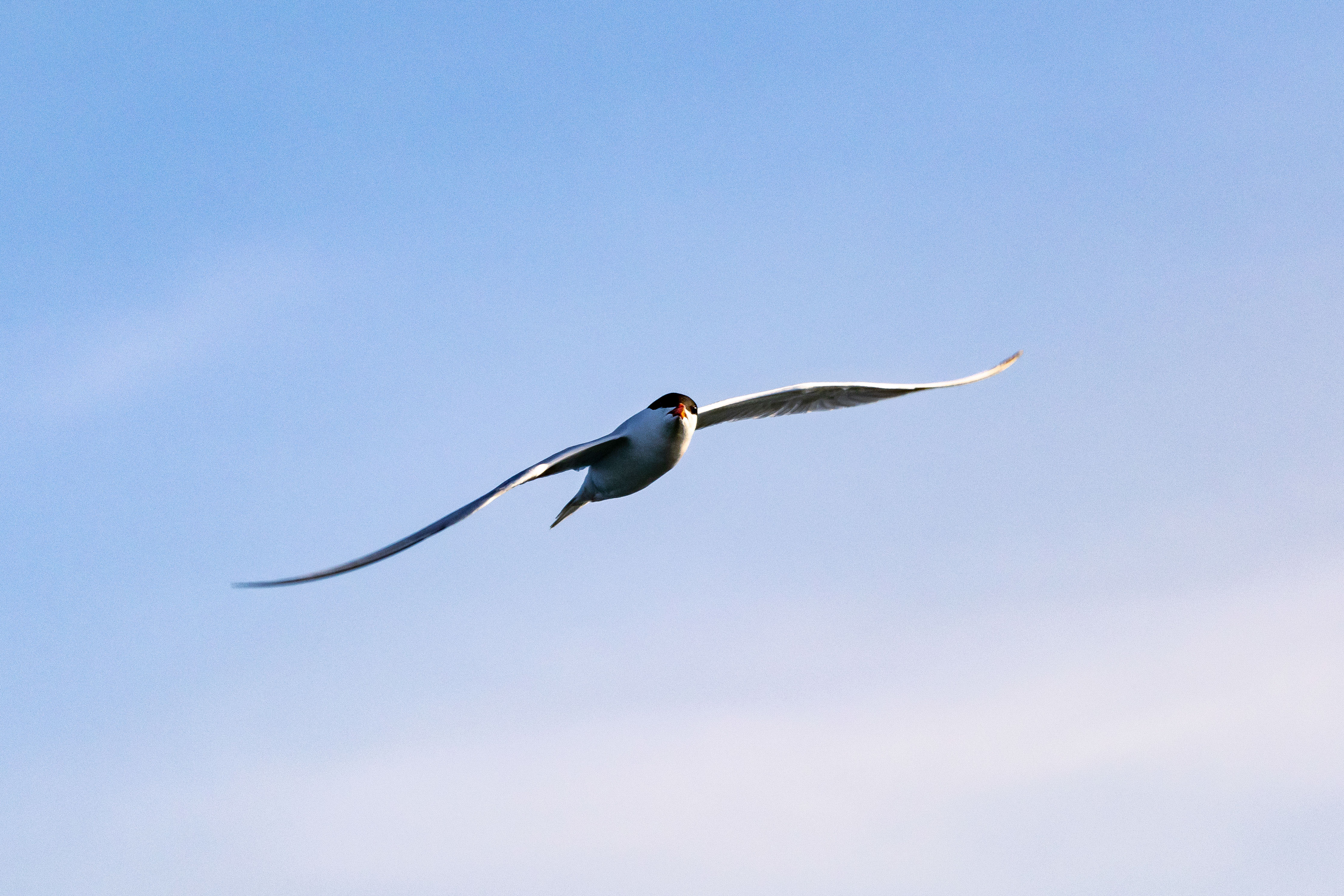 燕鷗晨舞。清晨的陽光別於夕陽,海風吹拂之下,天空顯得清透柔和,斜射而來的光芒耀眼而溫厚,更顯那白色羽翼的剛毅強勁。