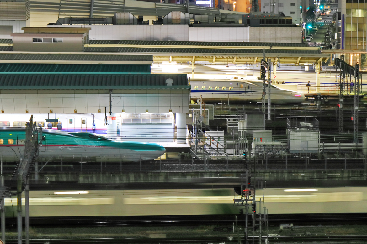 在頂樓透過長鏡頭也能一窺各型新幹線準備發車與東京車站這鐵路樞紐的忙碌感。