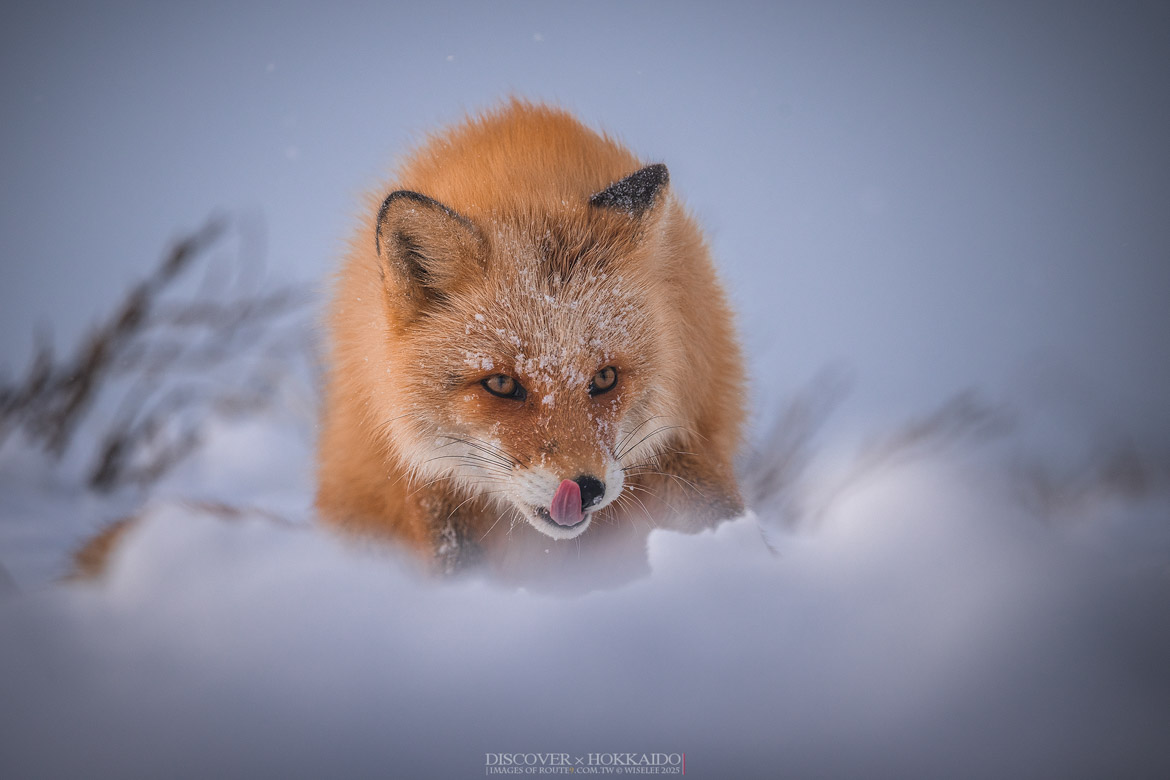 今年2月,我又帶著 EOS R5 Mark II 前往北海道,在帶廣巧遇了破紀錄的北海道 10 年大雪,12 小時內降下了超過1公尺高的雪量,讓這次的拍攝增添了難度但也增加了可看性。這次行程主要的拍攝主題是生態攝影,雖然我並不是擅長拍攝飛羽題材的攝影師,但對於北海道的丹頂鶴、長尾山雀、赤狐….等動物,卻是滿心期待已久,另外當然也少不了雪景與晨昏、星空題材。