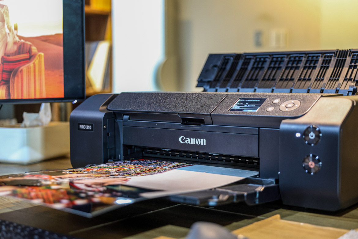 此外,他也分享了工作室中使用的另一台夥伴—— Canon PIXMA G670。這台擁有六色墨水與高印量設計的印表機,是他日常列印縮圖、樣張與生活照片的好幫手。「PRO-310 是舞台,G670 是日常。前者用來呈現作品的靈魂,後者讓創作融入生活。」