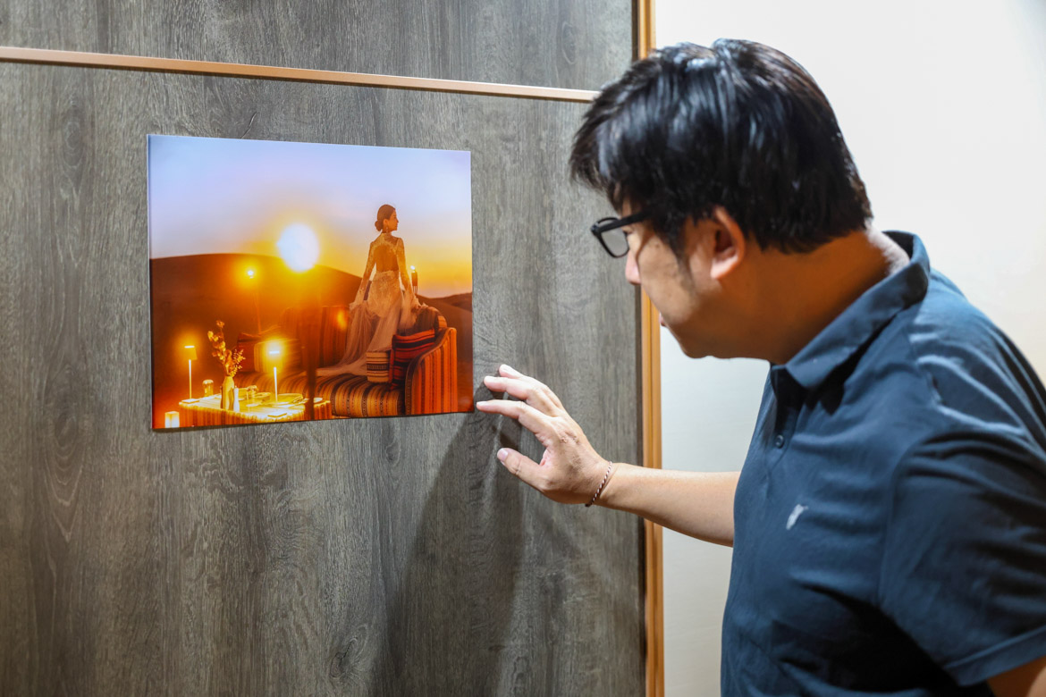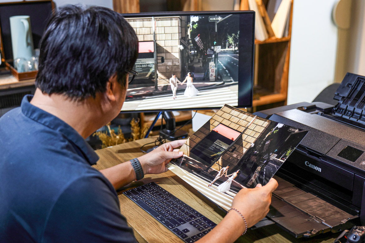 在婚紗攝影的流程中,柯宏親最珍視的階段,不是拍攝當下,而是當作品被列印出來的那一刻。「那是整個創作中最有儀式感、也最有靈魂的一步。」當照片從螢幕走向紙張,光與情感被重新定義;紙張的質地、反光的角度、色彩的層次,會讓當時的溫度再次浮現。