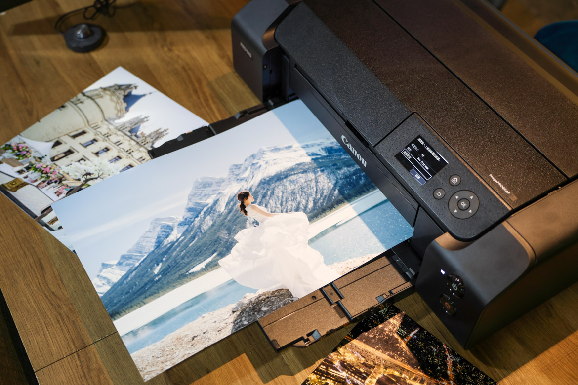 「我特別喜歡 PRO-310 的 A3+ 輸出尺寸,它讓我能親手製作具有收藏價值的作品。不論是夕陽下的金色光暈,還是婚紗布料的絲滑光澤,都能在紙上再次呼吸。」Canon 專業列印技術的防褪色特性與長期保存性,更讓他深感安心——「我交給新人的是一份能陪伴他們一輩子的記憶,而 Canon 讓這份記憶能在時間裡長久延續。」