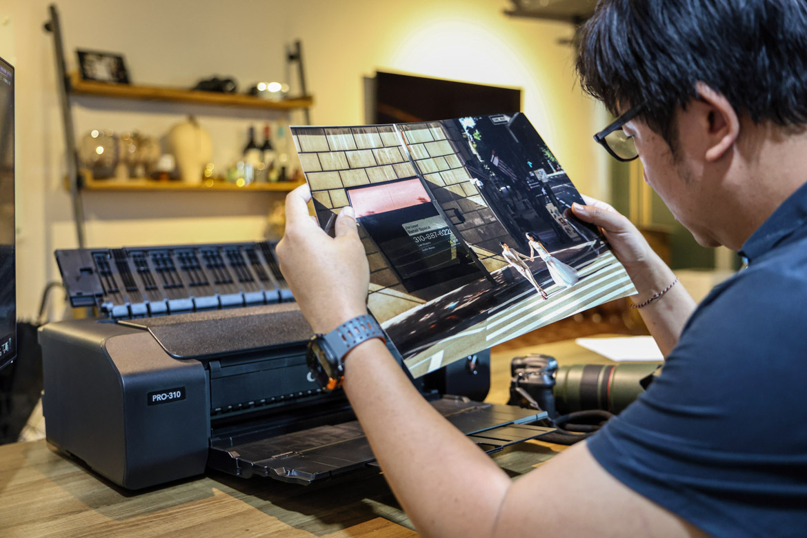 他最喜歡的瞬間,是把成品交到新人手上。「當他們拿著照片,輕輕觸摸那份厚度,眼神變得柔軟,那不只是作品交付,而是記憶被擁有的瞬間。」對他來說,列印是攝影的最後一哩路,讓作品從「被看見」變成「被感受」。