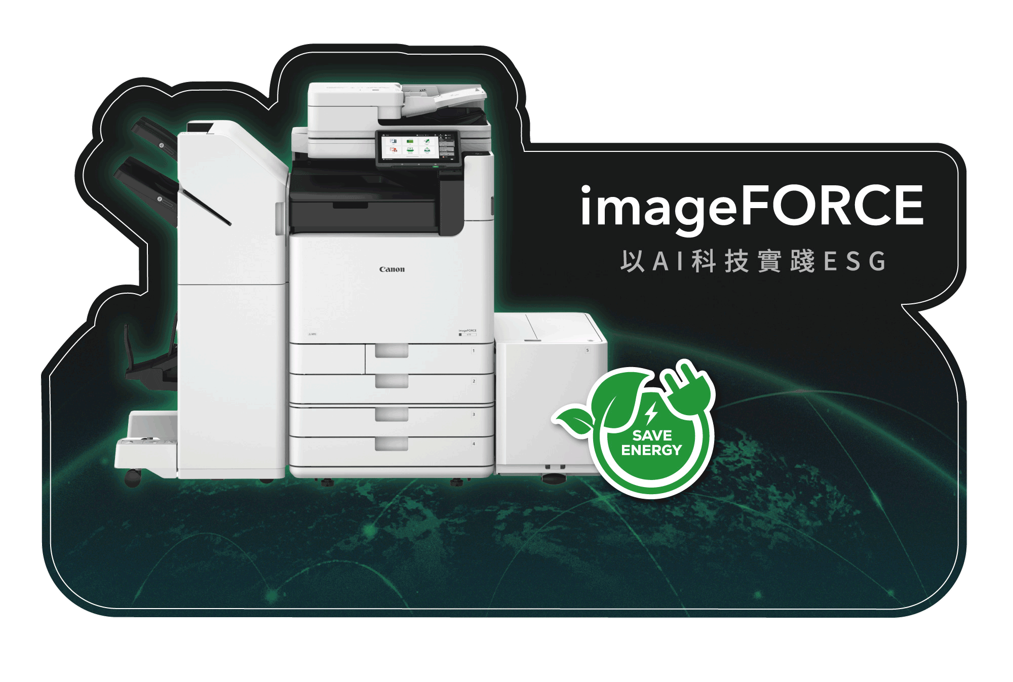 在推動低碳辦公環境方面,今年初 Canon 在台灣市場推出 imageFORCE 系列全新智慧複合機,打造更永續的商用列印解決方案。Canon imageFORCE 智慧複合機 擁有全面優化能源效率設計,透過低溫定影設計與智慧待機管理,最高可降低 30% 待機耗電量,並藉由雙面列印優化機制減少紙張使用,充分展現 Canon 以科技落實 ESG 的具體成果。