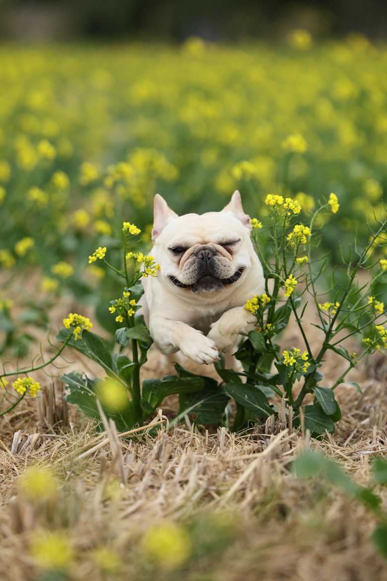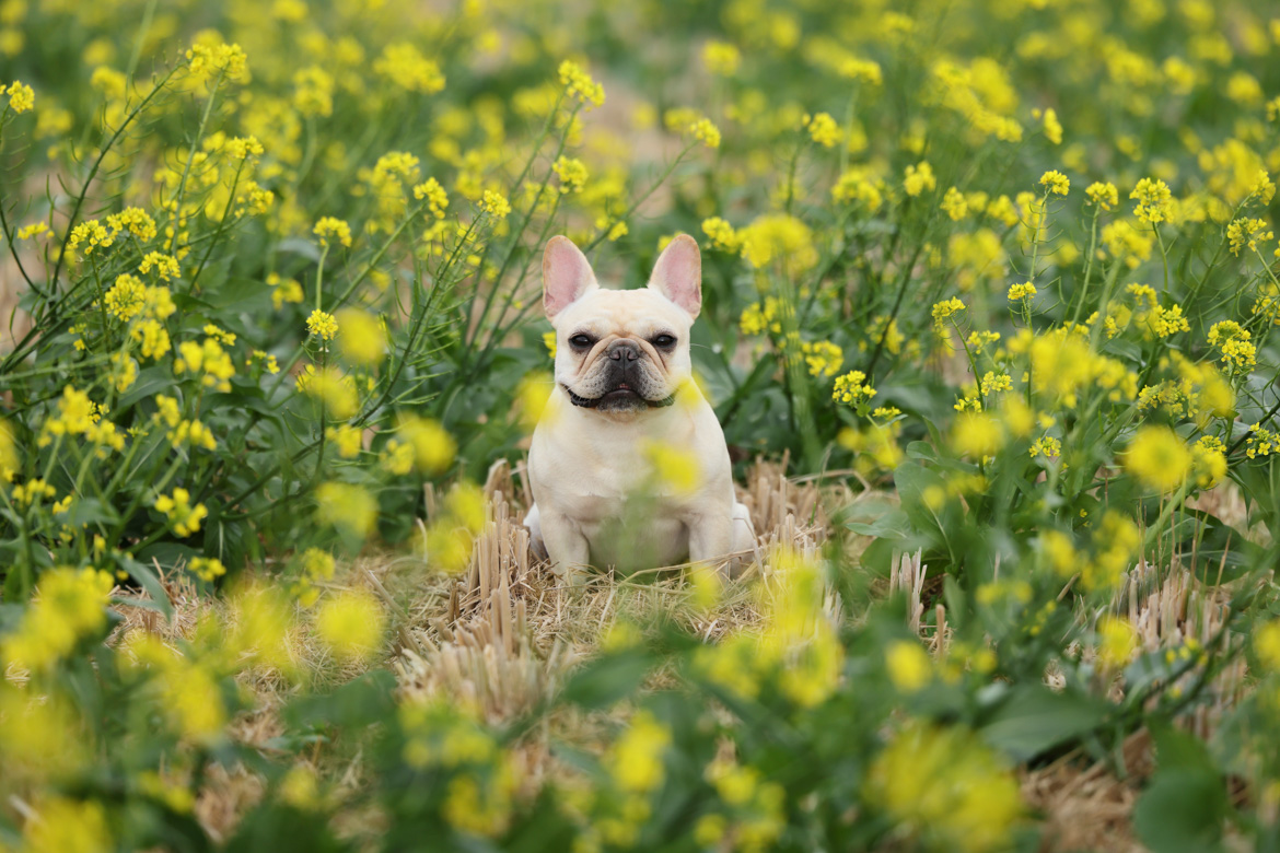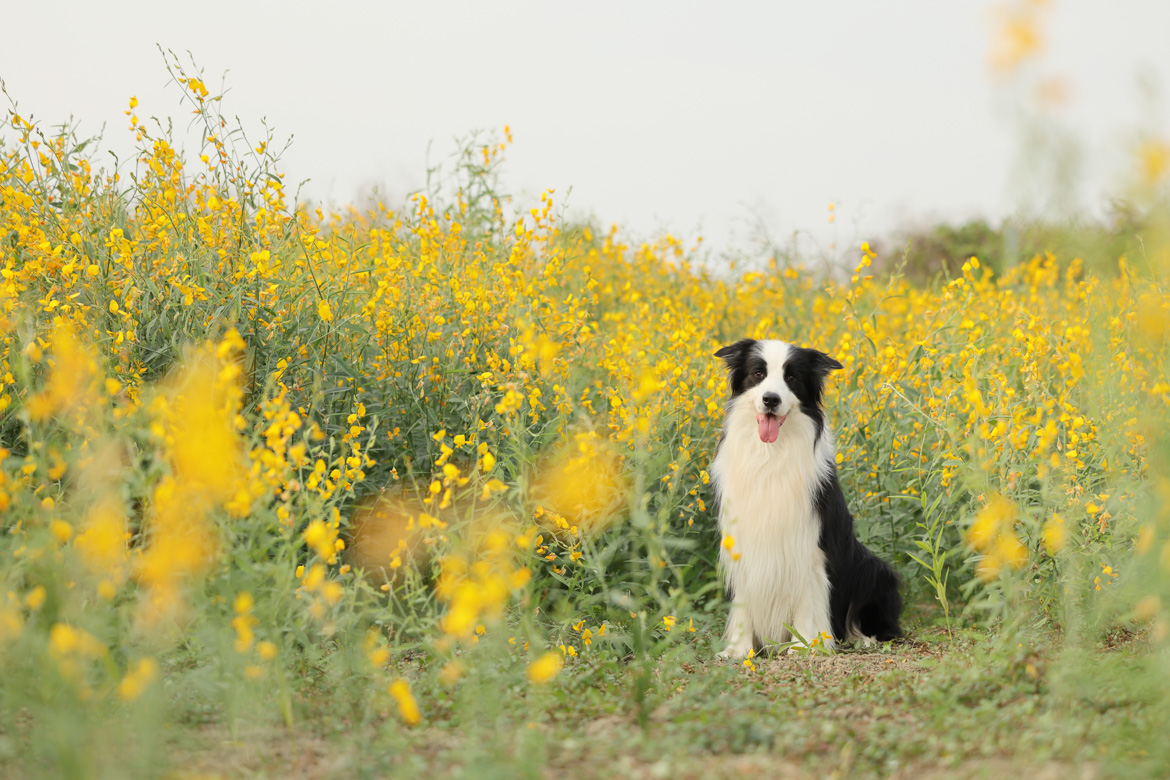 在花海或戶外自然場景拍攝時,背景常充滿鮮豔色彩與層層景深,容易干擾對焦判斷。EOS R5 Mark II 的動物眼睛偵測自動對焦,能精準辨識並鎖定寵物眼睛,即使主體被花朵包圍,依然能穩定維持清晰焦點,讓毛小孩在夢幻景色中成為最突出的視覺主角,確保畫面兼具氛圍與銳利細節。