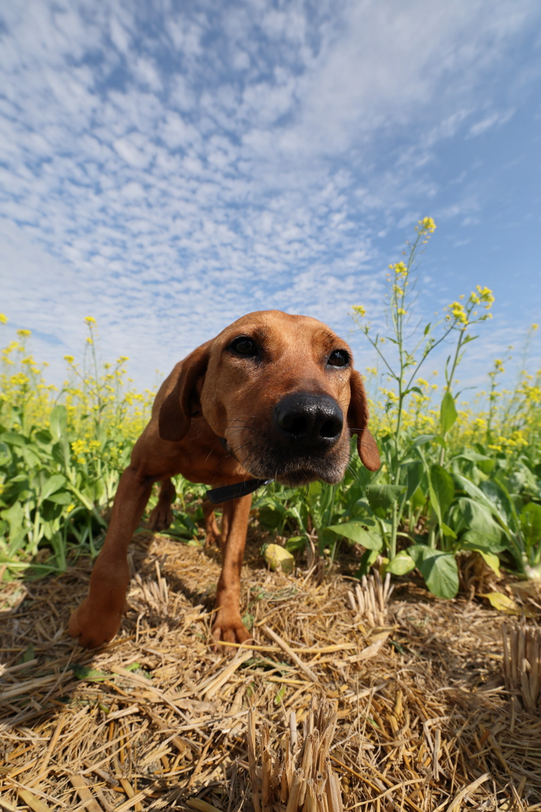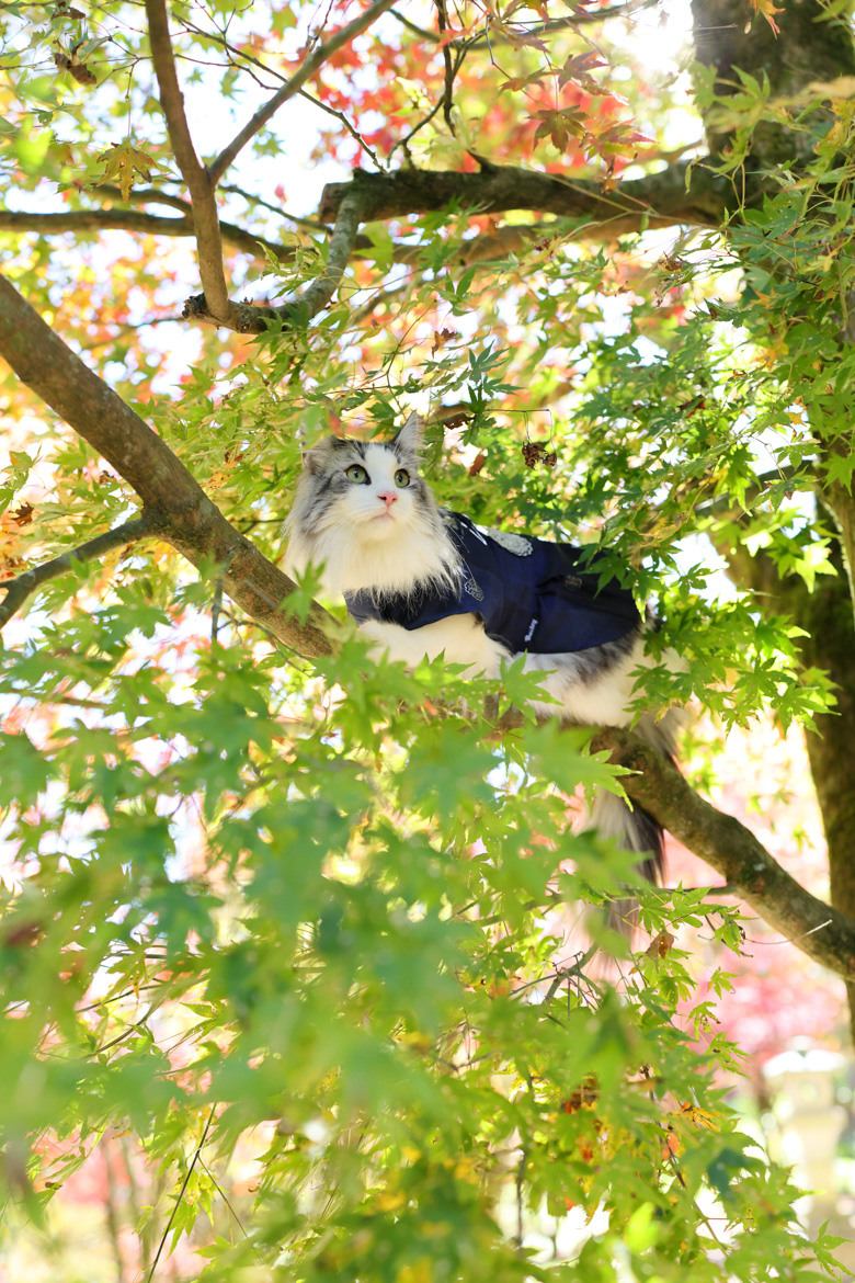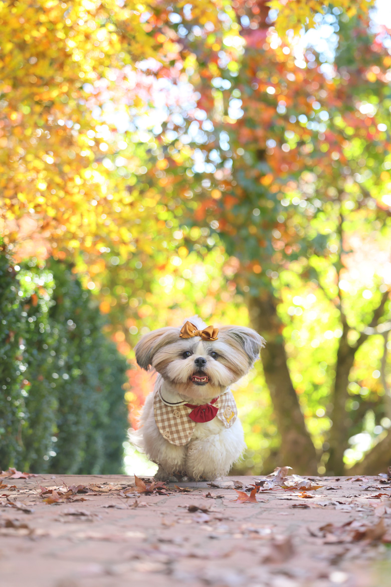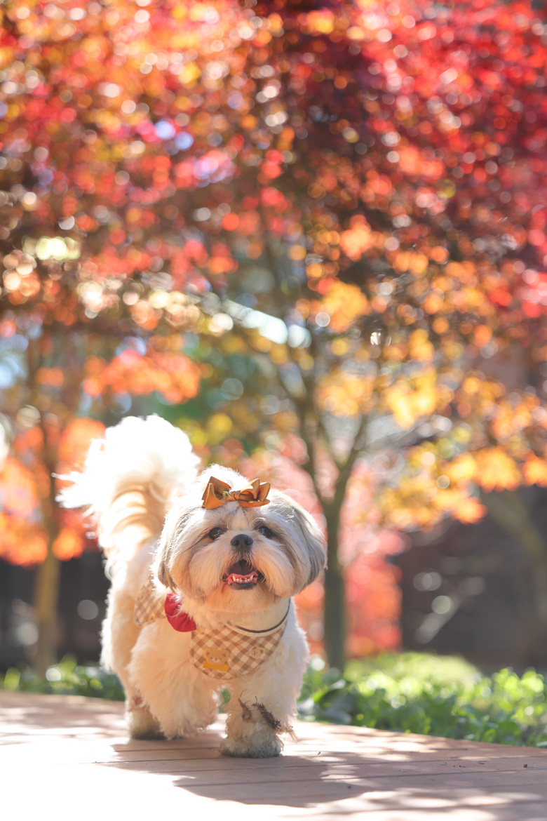 15mm 廣角端帶來的透視效果,能創造可愛的視覺比例,常被用來拍攝「大頭狗」畫面。在花海、楓葉或樹林等自然場景中,這顆鏡頭能完整保留環境氛圍,讓畫面具有故事性。