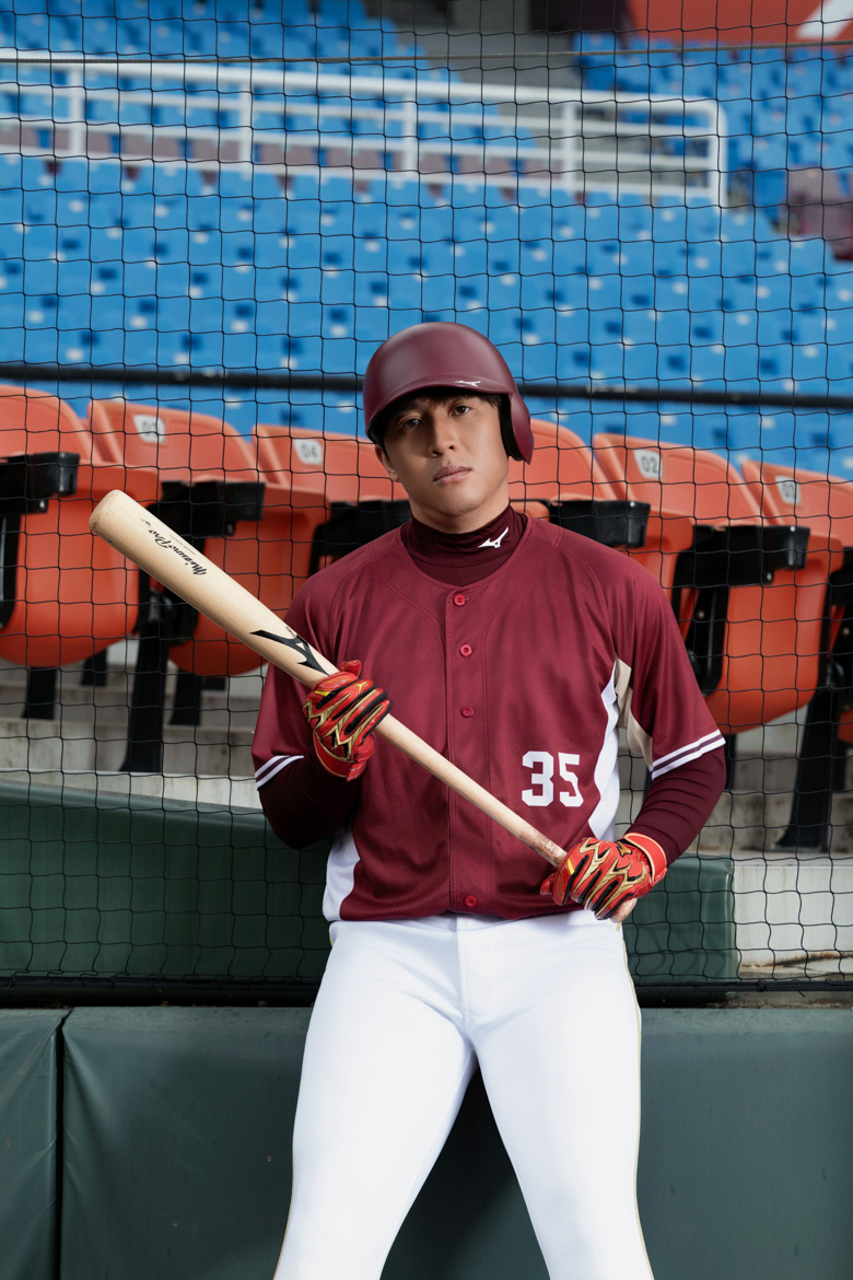 接著,他會將球員場上的招牌動作,例如吼叫、慶祝手勢、比賽姿態,融入拍攝設計,讓形象照不只是好看,更具有角色辨識度。「我希望觀眾一看到照片,就能聯想到那名球員在場上的樣子。」
