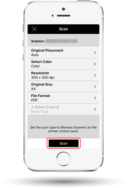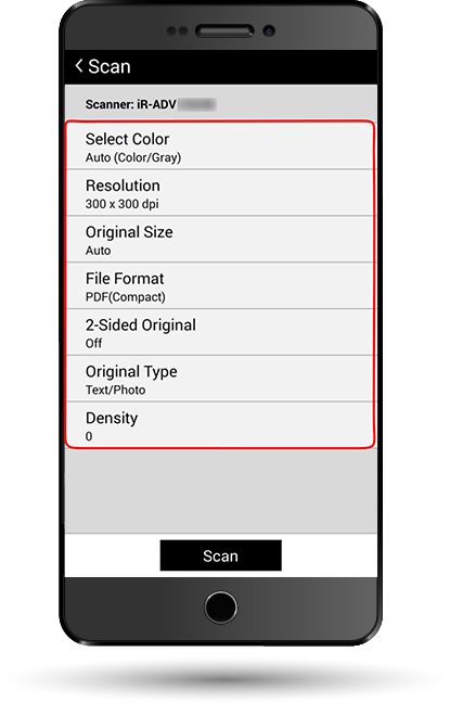 imageRUNNER ADVANCE使用該功能時,必須先在行動終端裝置上配置完成掃描設定值,接著再設定Canon裝置。