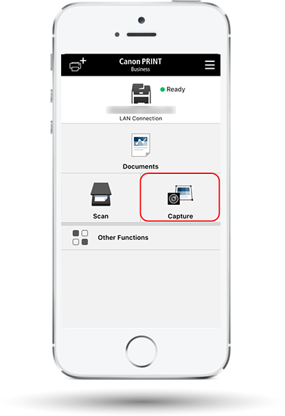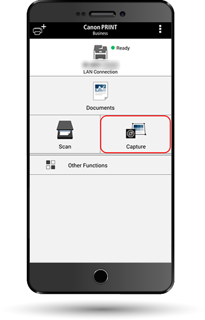 - 請在Canon PRINT Business app應用程式的首頁畫面裡,點選[擷取]。