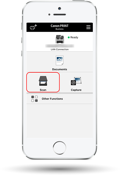 - 請在Canon PRINT Business app應用程式的首頁畫面裡,點選[掃描]。