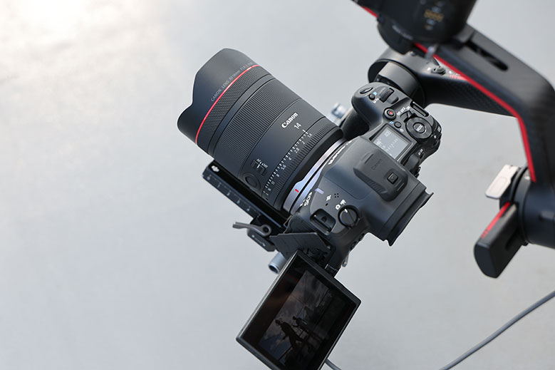 RF14mm F1.4 L VCM 採用與其他 F1.4 超大光圈定焦混合型 RF 鏡頭相同的高機動性設計,整個系列具備統一的外觀及約 76.5 毫米的直徑,鏡頭重量僅為約 578 克、連一體式遮光罩長度為約 112 毫米。 其一致的設計意味著 RF14mm F1.4 L VCM 與其他 F1.4 超大光圈定焦混合型 RF 鏡頭可以無縫配合使用,即使更換鏡頭亦無需重新校準穩定器等設備,使其成為任何影片製作工作流程的完美拍擋。