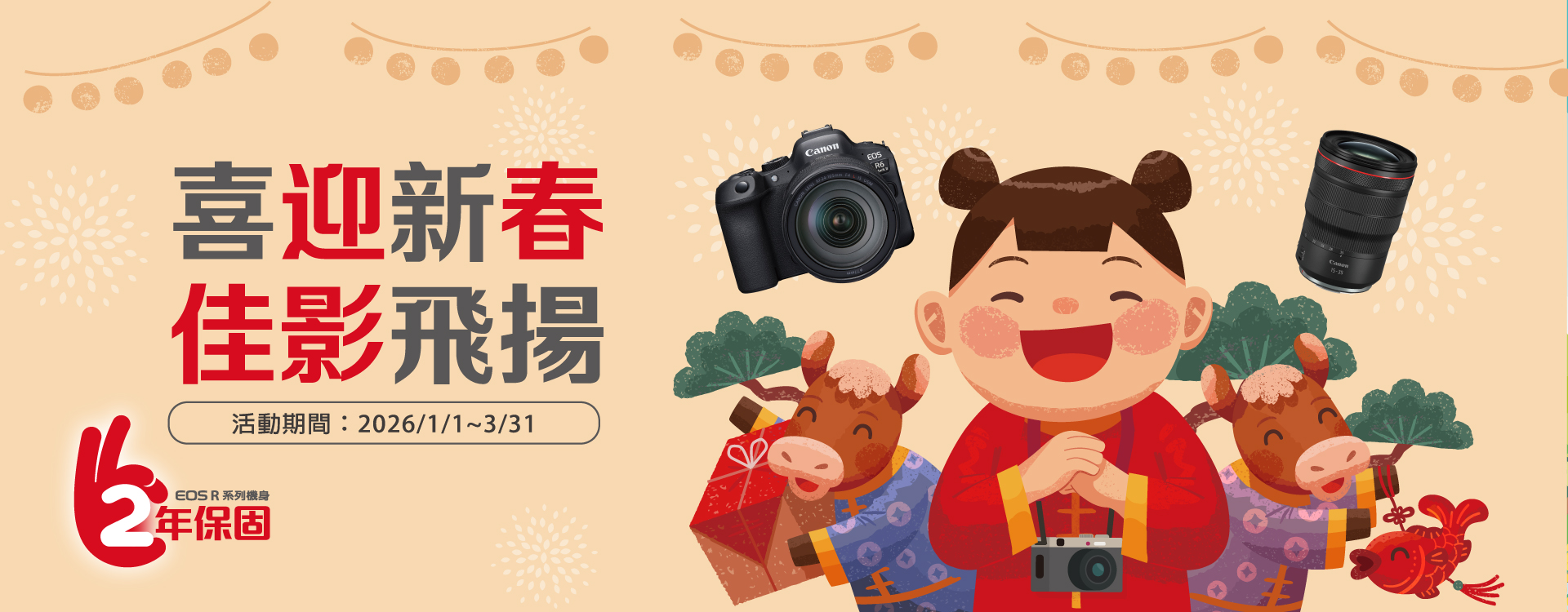 - 於活動期間內參加「喜迎新春 佳影飛揚」活動,每台相機機號及鏡頭機號僅限兌換乙次,僅限保固註冊本人親自申請,不得由他人代為申請。