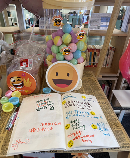 在忙碌的公務與會議之間,你是否曾停下腳步,感受身邊細微的美好?為了延續 Smile Office 的正能量,CMTW在咖啡休憩區特別設立了「微笑日記」小站,邀請每一位同仁在這裡放下壓力,用溫度感十足的手寫文字,紀錄屬於你的喜悅瞬間。