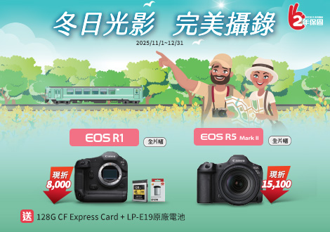 *2025/12/31 前購買 EOS/PowerShot V 系列相機,回函月月抽 10 名『海風號 觀光列車套票』1 人得獎 2 人同行