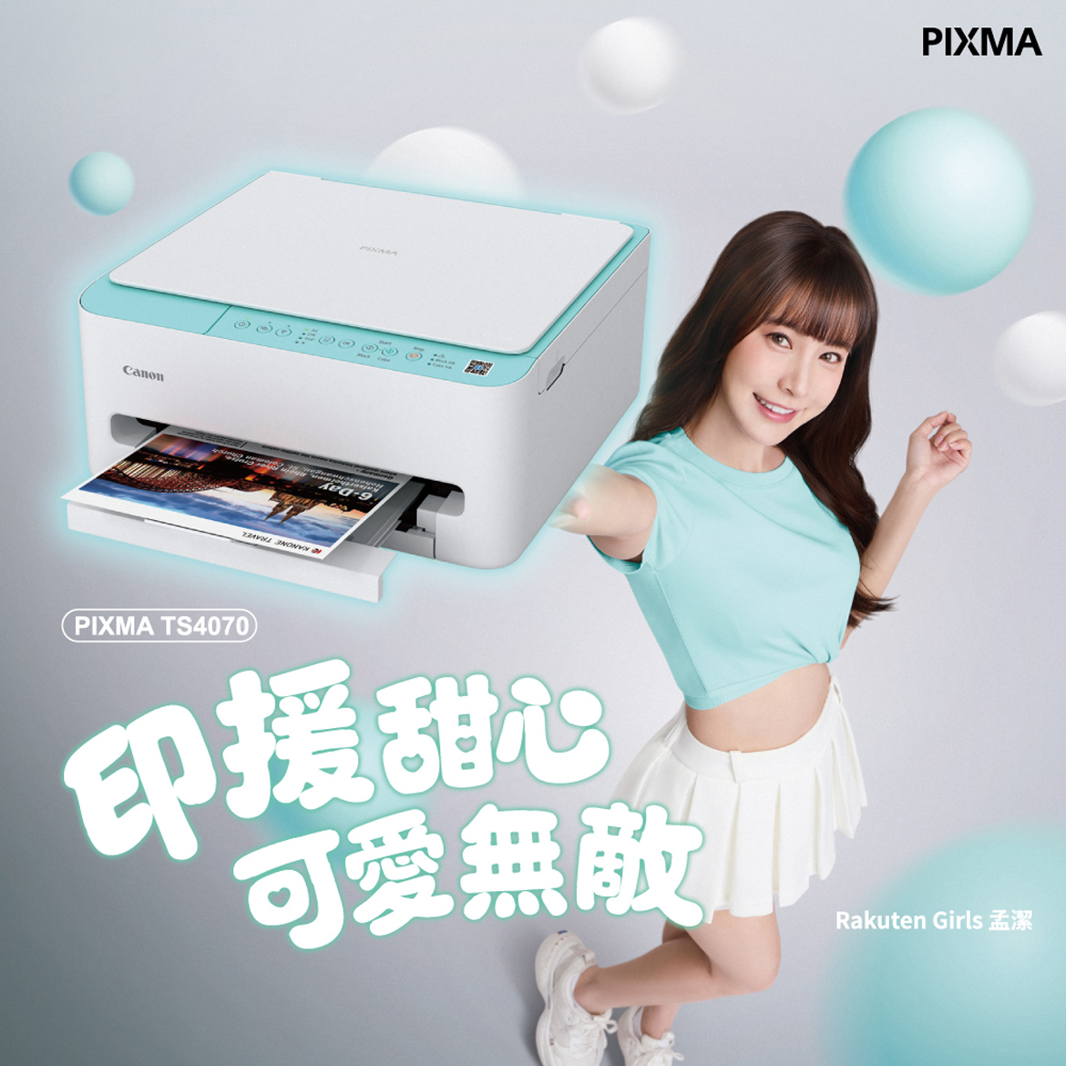 迎接開學季,Canon 特別邀請樂天桃猿啦啦隊Rakuten Girls 孟潔與 PIXMA TS4070 一起為學生們可愛印援,新學期都能開心學習,收穫滿滿的知識。Canon PIXMA TS4070 不僅兼具美型與實用功能,更以精緻輕巧的外觀與獨特配色,為居家空間增添可愛活潑的氛圍,薄荷綠馬卡龍色也有視覺療癒與舒壓的效果,帶來清新舒適的空間感,成為現代家庭和學習不可或缺的貼心小幫手。