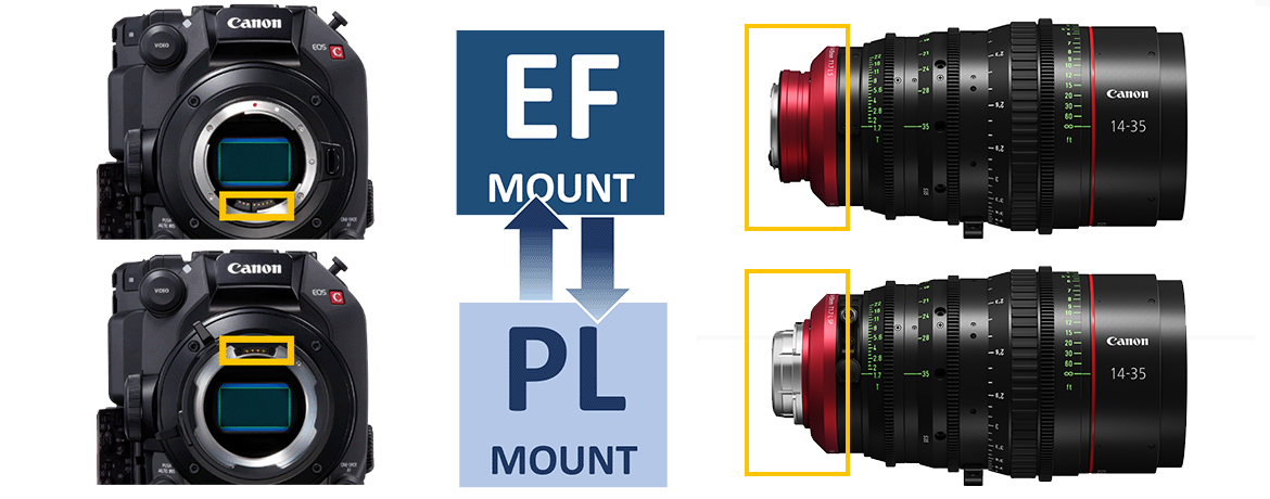 本鏡頭的接環可更換為 EF 或 PL 接環,讓您能依照攝影機系統彈性搭配使用。此可更換式接環設計,亦確保您的鏡頭投資具備長期使用價值。