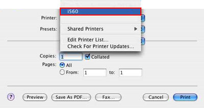 2. 在「印表機 (Printer)」彈出功能表中,選擇正在使用的印表機。