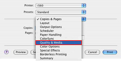 3. 在自頂部起第三個彈出功能表中選擇「品質和媒體 (Quality & Media)」。