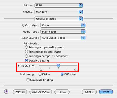 5. 使用「列印品質 (Print Quality)」滑桿調整列印品質與列印速度之間的平衡。