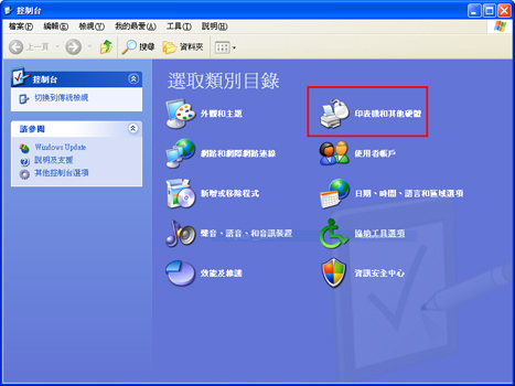1-3. 按一下「印表機和傳真」。