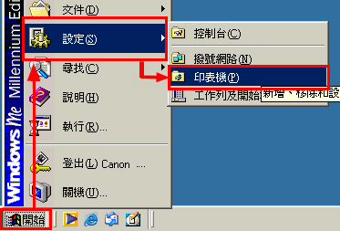3-1. 按一下「開始」、「設定」,然後按一下「印表機」。