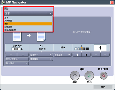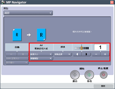 11. 指定紙張大小、媒體類型、複製品質和複製頁數的設定。