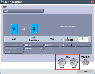 12. 要以黑白方式複製,按一下[黑白],要以彩色方式複製,按一下[彩色]。