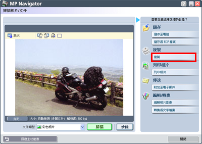 14. 使用「MP Navigator」複製掃描的影像完成。