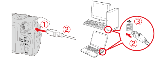 1. 使用相機隨附的介面連接線連接相機的 DIGITAL 端子至電腦的 USB 連接埠。