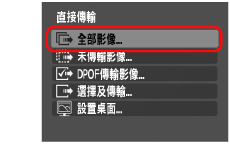6. 相機的液晶螢幕上出現下面的選單後,請選擇[全部影像]以下載記憶卡中記錄的全部影像。