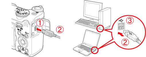 1. 使用相機隨附的介面連接線連接相機的 DIGITAL 端子至電腦的 USB 連接埠。