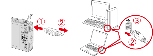 1. 使用相機隨附的介面連接線連接相機的 DIGITAL 端子至電腦的 USB 連接埠。