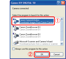 如果「CameraWindow」未自動出現,按[開始(Start)]按鈕,然後依次序選擇[所有程式(All Programs)]或[程式(Program)]、[Canon Utilities]、[CameraWindow]及[CameraWindow]以開啟「CameraWindow」。