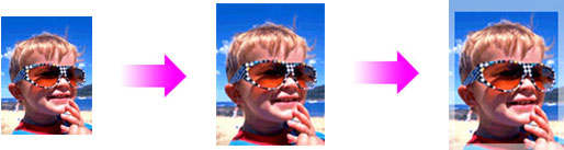 設定的擴展量越小,不列印的影像部份也就越小。但是,如果設定的擴展量過小,列印後影像可能會出現白色邊框。