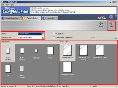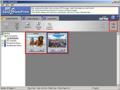 1. 在「影像選擇(Image Selection)」選項卡中選擇要列印的影像,並按一下「下一步(Next)」。
